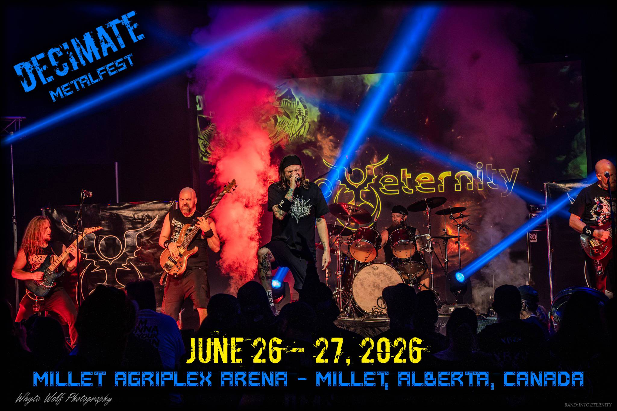Founded on passion and perseverance, Decimate Metalfest stands as one of Alberta’s loudest and most inclusive, woman-led festivals. Taking place annually at the Millet Agriplex Arena, the event unites fans and artists from across Canada and beyond for two days of music, art, and unity. With past lineups featuring acts like Into Eternity, FILTH, Narcotic Wasteland, The Order of Chaos, Arrival of Autumn, Ninjaspy, and dozens more, Decimate continues to build a legacy as a festival that truly represents the spirit of the underground.